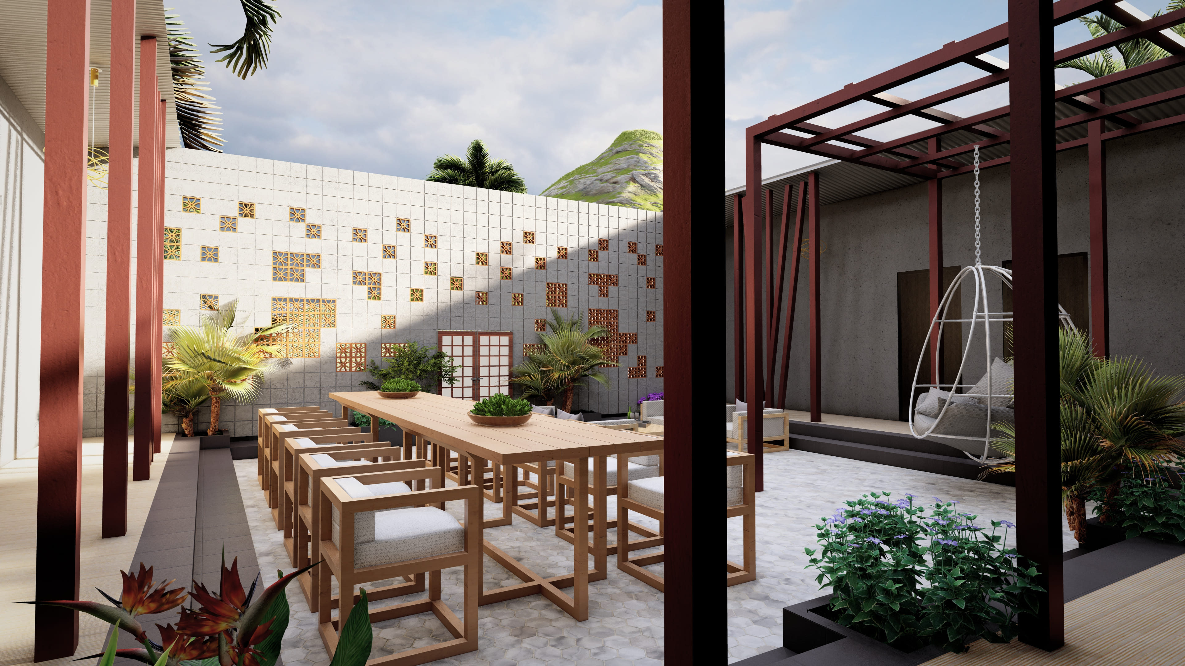 The Courtyard Villa, situated just a short distance from Kanakpura Road, immediately excludes a vacation ambiance. The central courtyard not only adds to its charm but also plays a vital role in maintaining a cool temperature and facilitating ventilation.