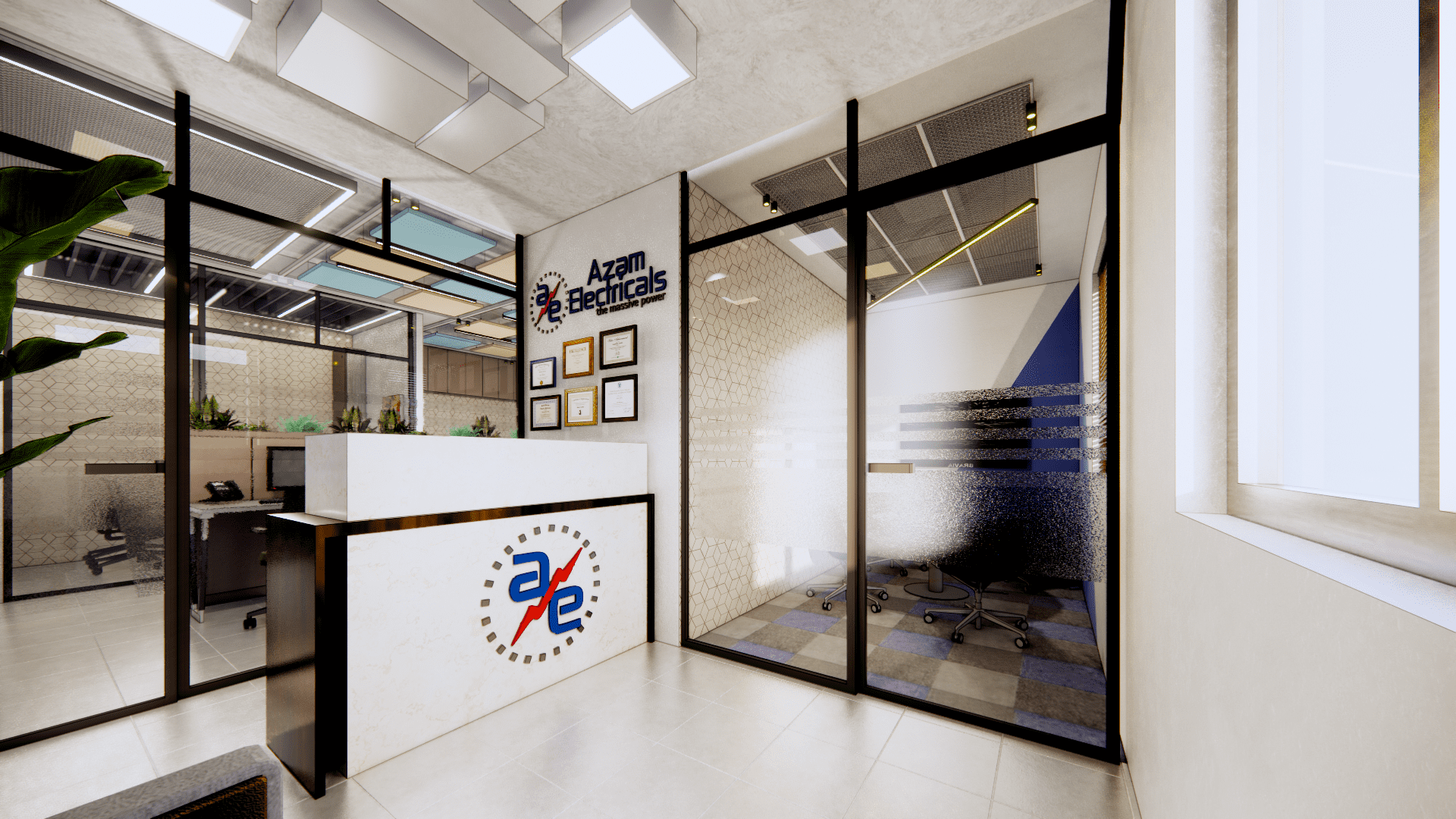 It was delightful collaborating with Azam Electricals on their special project to revamp their office space, infusing it with an inviting and aesthetically curated blend of materials. The initiative aimed to present an appealing and contemporary atmosphere to their clients.
